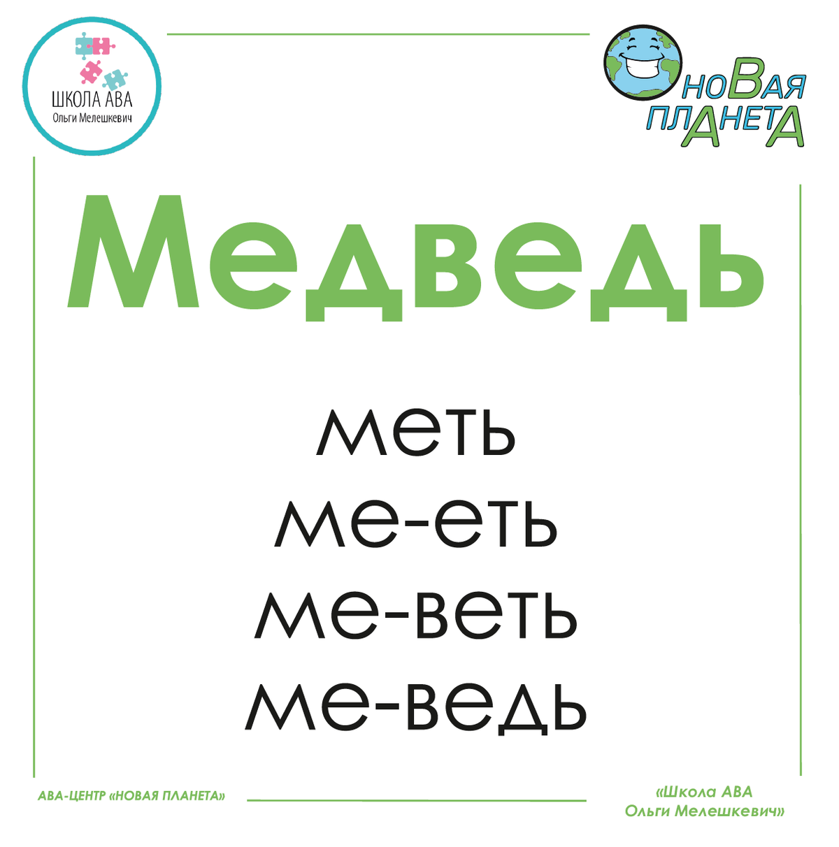 Пособие прилагается к вебинару (pdf документ). Для работы вы можете распечатать и заламинировать карточки. Мы также научим вас самим делать разбивку слов по уровням сложности. Таким образом вы будете добавлять новые слова в работу по технологии Слогострой!